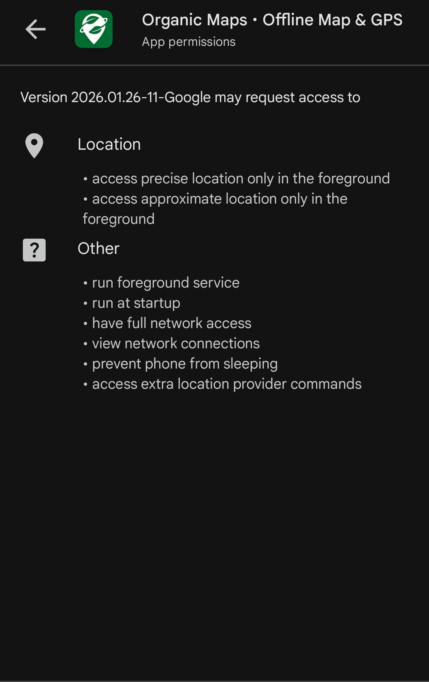 Organic Maps doesn't request excessive permissions to spy on you: