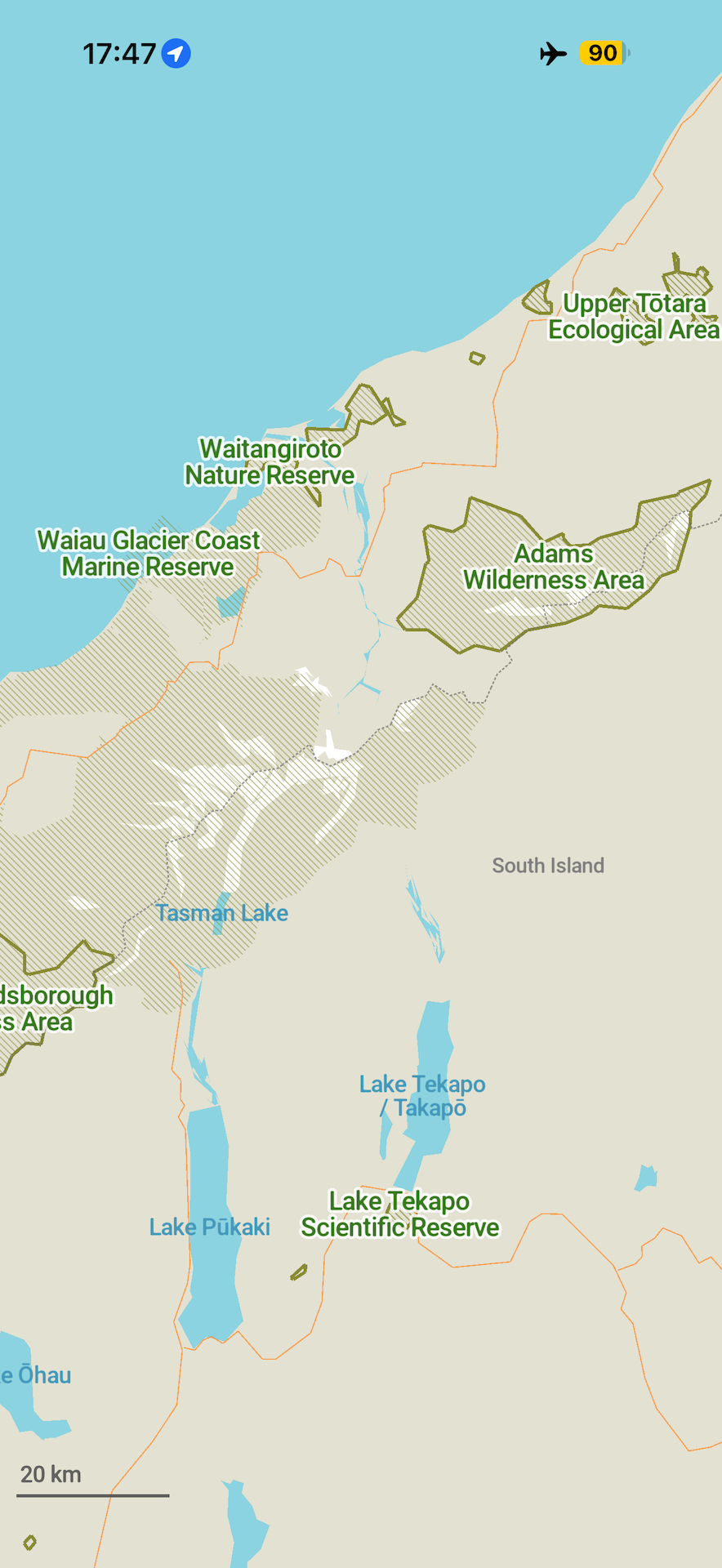 - Una mappa senza bordi. Organic Maps ora scorre senza interruzioni attraverso l'antimeridiano (±180° di longitudine). Trascinate e ruotate tra la Chukotka e l'Alaska, o tra la Nuova Zelanda e le Figi, senza muri invisibili e senza fastidiosi reset — il Pacifico finalmente sembra rotondo.