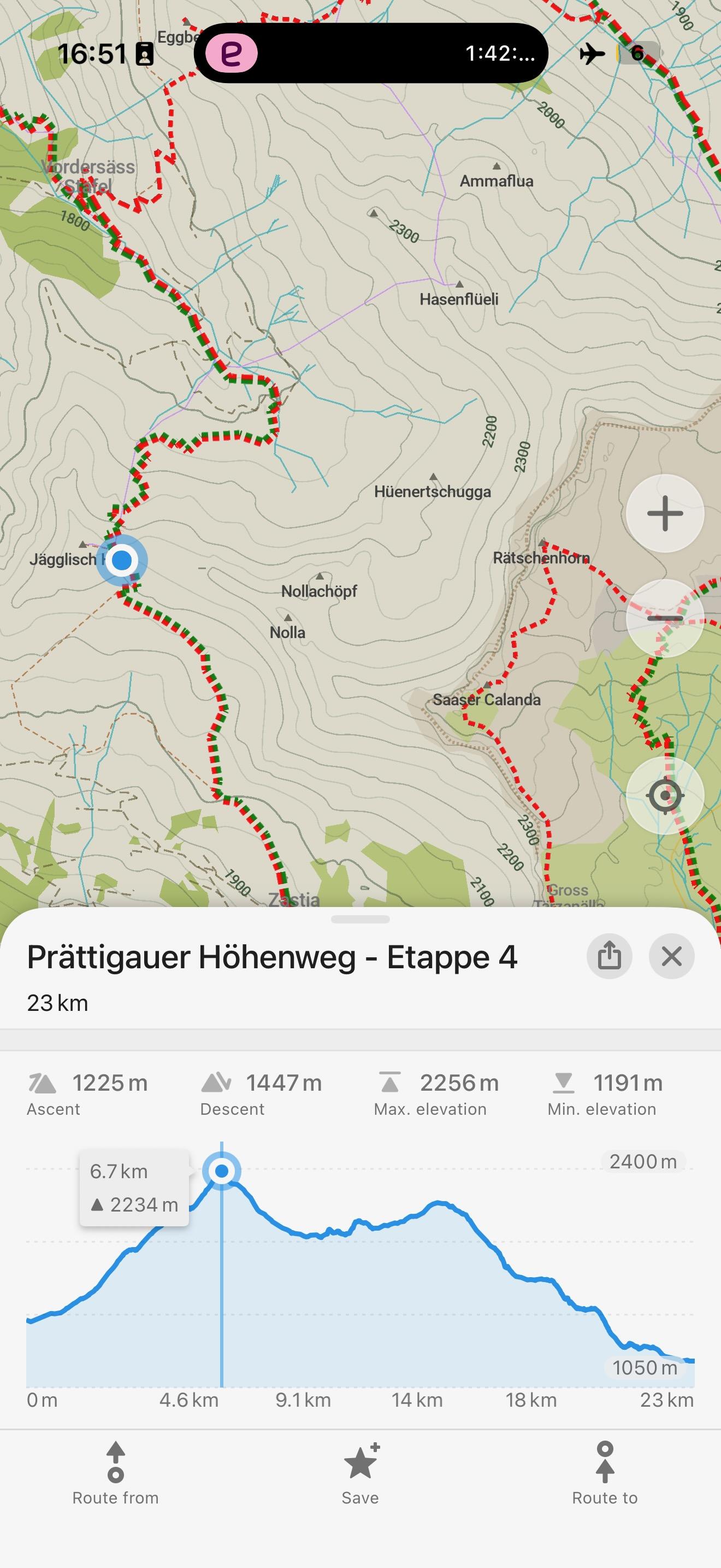 - Tryck på en led och se stigningen. Vandrings- och cykelleder går nu att välja direkt på kartan. Tryck på en led för att markera den och se dess höjdprofil direkt.